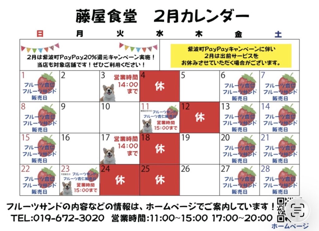 | 営業時間 | 昼の部 11:00~15:00 夜の部 17:00~20:00 l.o それぞれ30分前 詳しくは営業カレンダーをご覧ください |