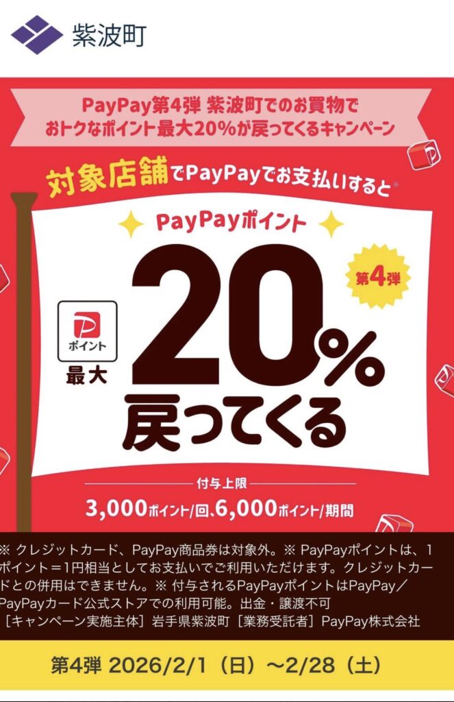 紫波町PayPayポイント20%還元キャンペーン開催中✨ 藤屋では全ての商品が対象です😄